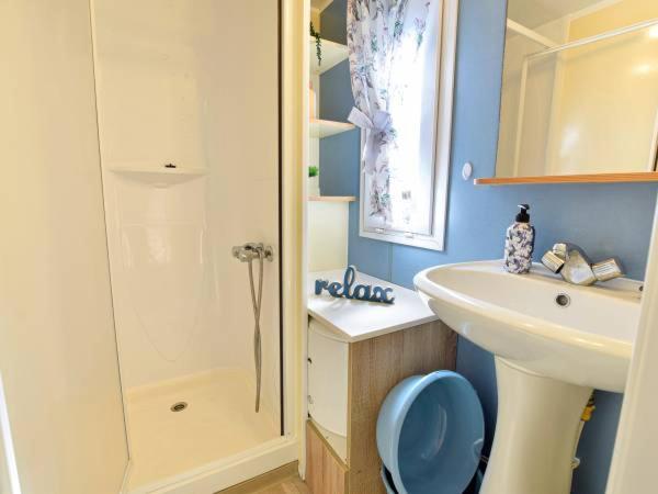 W domu wakacyjnym zapewniono kilka sypialni (2), kuchnię z lodówką i mikrofalówką, telewizor z płaskim ekranem, część wypoczynkową oraz łazienkę (1).